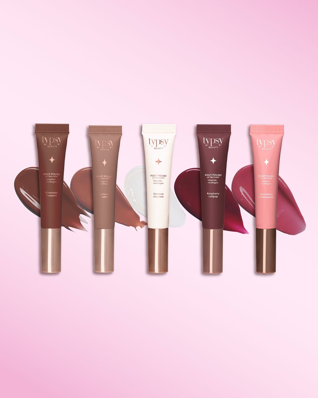 Typsy Beauty Pout Polish Lip Treatment Balm Peptide + CollagenShade:Strawberry Cheesecake with Shimmer: Shimmery Pink